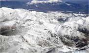 A nomad walks along a path with snow-covered mountains in the background after a snowfall in Sonmarg, outskirts of Srinagar, the summer capital of Indian-controlled Kashmir, June 12, 2019. (Photo: Xinhua)