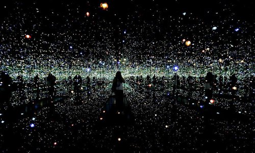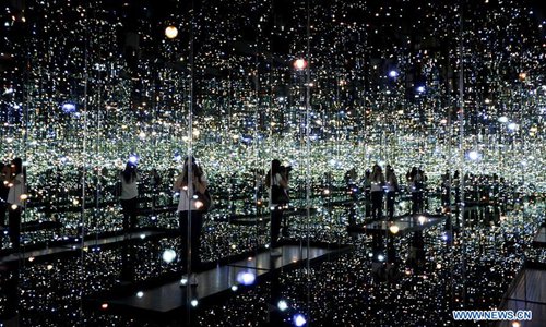 The photo taken on June 18, 2019 shows artist Yayoi Kusama's installation "Infinity Mirrored Room - The Souls of Millions of Light Years Away" in Los Angeles, the United States. (Xinhua/Li Ying)