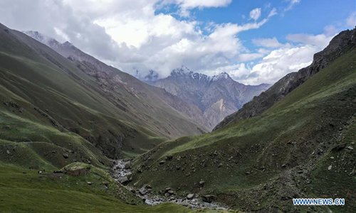 Photo taken on June 22, 2019 shows mountains of the Laybulak pasture amid clouds in Taxkorgan Tajik Autonomous County of northwest China's Xinjiang Uygur Autonomous Region. The Laybulak pasture lies in the heartland of the Pamir Plateau in northwest China at around 3,700 meters above sea level. Its bountiful water resources and forage grasses make it an ideal summer pasture for the nomads nearby. (Xinhua/Hu Huhu)