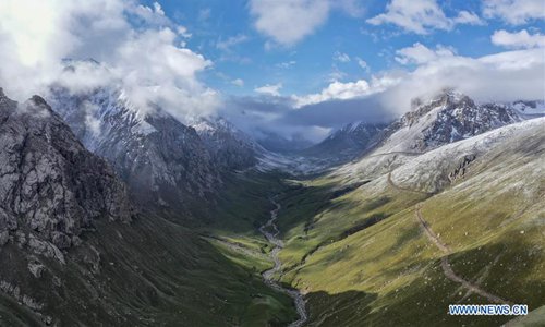 Aerial photo taken on June 22, 2019 shows a scenery of the Laybulak pasture after snow in Taxkorgan Tajik Autonomous County of northwest China's Xinjiang Uygur Autonomous Region. The Laybulak pasture lies in the heartland of the Pamir Plateau in northwest China at around 3,700 meters above sea level. Its bountiful water resources and forage grasses make it an ideal summer pasture for the nomads nearby. (Xinhua/Hu Huhu)