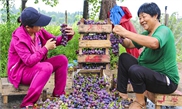 A villager arranges grapes at Chucun Village of Tanglin Town in Zaoqiang County, north China's Hebei province, June 25, 2019. Over 2,000 mu (about 133.3 hectares) of grapes greenhouse plantation promoted by local authorities has boosted more than 1,000 local residents' income in recent years. (Photo: Xinhua)