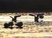 Common redshanks are seen at Lhalu wetland in Lhasa, southwest China's Tibet Autonomous Region, June 26, 2019. Lhalu wetland national nature reserve is known as "the Lung of Lhasa". (Xinhua/Zhang Rufeng)