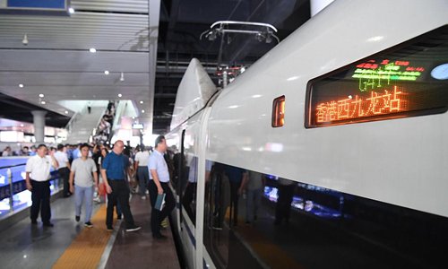 Passengers board the G417 bullet train as it prepares to depart from the Nanning East Railway Station in South China's Guangxi Zhuang Autonomous Region to Hong Kong on July 10, 2019. Photo: VCG