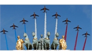 The Patrouille de France passes over the Arc de Triomphe du Carrousel during the annual Bastille Day military parade in Paris, France, on July 14, 2019. (Photo: Xinhua)