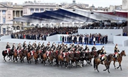 Soldiers take part in the parade during the Belgian National Day celebrations in Brussels, Belgium, July 21, 2019. The Belgian National Day is celebrated on Sunday. (Xinhua/Zheng Huansong)