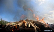 Photo shows the seized pangolin scales and elephant ivory in Singapore on July 23, 2019. In the joint statement issued by Singapore's National Parks Board (NParks), Singapore Customs and the Immigration & Checkpoints Authority (ICA), 11.9 tonnes of pangolin scales and 8.8 tonnes of elephant ivory were found in a container from the Democratic Republic of the Congo being shipped to Vietnam via Singapore. This is the largest seizure of elephant ivory in Singapore to date. (Xinhua/Then Chih Wey)