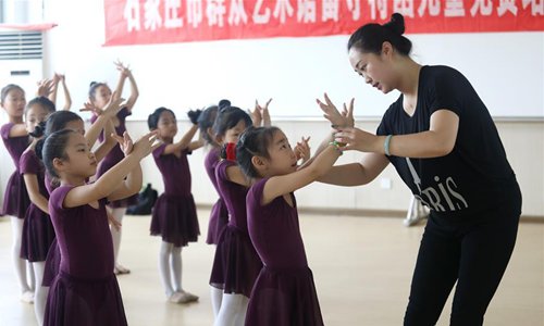 Children attend a dancing class during summer vacation in Lingshou County of Shijiazhuang, capital of north China's Hebei Province, Aug. 6, 2019. (Xinhua/Luo Xuefeng)