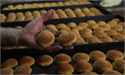 A Syrian sweet maker shows date cookies before putting them in the oven in a sweet shop in Damascus, Syria, on Aug. 8, 2019. Date cookies are traditional sweets for the upcoming Eid al-Adha, or the Feast of the Sacrifice, in Syria. (Photo by Ammar Safarjalani/Xinhua)