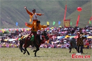 People wearing hats are seen during a horse racing festival in Nagqu City, southwest China's Tibet Autonomous Region, Aug. 10, 2019. People in Amdo County of Nagqu City have a tradition of wearing hats, which are now mostly made from lamb skins and artificial leather.The hat usually has an antenna-like stripe of fabric at the top. (Xinhua/Chogo)
