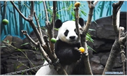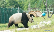Sijia plays at Giant Panda House in the ski resort of Yabuli, northeast China's Heilongjiang Province, Aug. 12, 2019. Giant panda Sijia, born in 2006, moved to Yabuli in July 2016 from southwest China's Sichuan Province. The panda house celebrated Sijia's 13th birthday on Monday. (Xinhua/Wang Song)