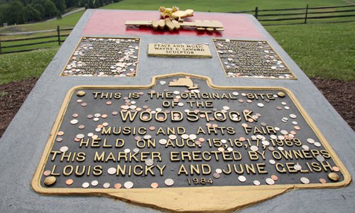 A commemorative plaque on the site where the Woodstock Festival took place 50 years ago on a farm in upstate New York Photo: IC