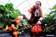 A farmer works in a greenhouse at an eco industrial park in Jiuquan City, northwest China's Gansu Province, Aug. 18, 2019. Bordering the Badain Jaran Desert, the city used to find it difficult to develop economy. In recent years, a program has been kicked off in local region to build greenhouses in the desert, taking advantage of the extended amount of sunlight and water source from the Qilian Mountains. Up to now, more than 1,666 hectares of greenhouses have been set up in the region. (Xinhua/Fan Peishen)