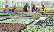 Farmers arrange plants at an eco industrial park in Jiuquan City, northwest China's Gansu Province, Aug. 18, 2019. Bordering the Badain Jaran Desert, the city used to find it difficult to develop economy. In recent years, a program has been kicked off in local region to build greenhouses in the desert, taking advantage of the extended amount of sunlight and water source from the Qilian Mountains. Up to now, more than 1,666 hectares of greenhouses have been set up in the region. (Xinhua/Fan Peishen)