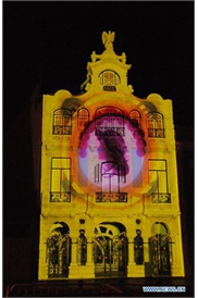 Photo taken on Aug. 21, 2019 shows the light show along Yitong River in Changchun City, northeast China's Jilin Province. (Xinhua/Lin Hong)