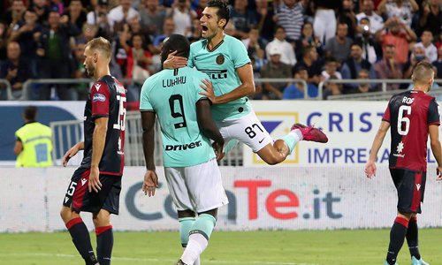 Lukaku was quickly surrounded by his teammates as Inter won their second from two league matches to sit ahead of champions Juventus, who also are on maximum points following their thrilling 4-3 win over Napoli on Saturday.