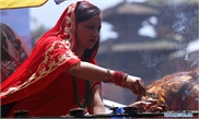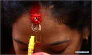Women dance during celebration of Teej festival at the premises of Pashupatinath Temple in Kathmandu, Nepal, Sept. 2, 2019. Nepali women on Monday celebrated the Hindu festival of Teej, during which married women fast for their husbands' long life and good health while the unmarried pray for ideal husbands. (Photo: Sunil Sharma/Xinhua)
