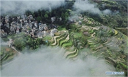 Aerial photo taken on Sept. 3, 2019 shows the terraced lands of paddy fields in Dongzhuang Village, Jinping County of southwest China's Guizhou Province. (Photo: Xinhua)