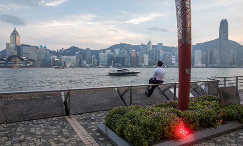 A young man sits by the Victoria Harbor in Hong Kong, China in August. Photo: VCG