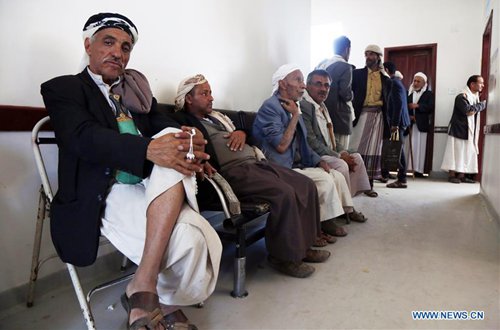 People with eye illness wait to receive free treatment during a medical campaign in Sanaa, Yemen, Sept. 16, 2019. A five-day medical campaign was launched on Sunday to provide free examination and surgery for people with eye illnesses. (Photo: Mohammed Mohammed/Xinhua)