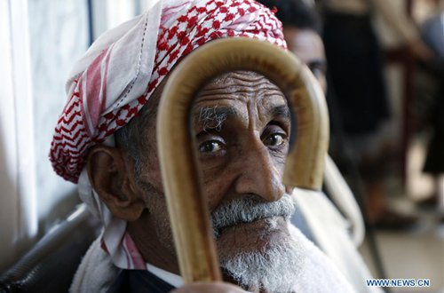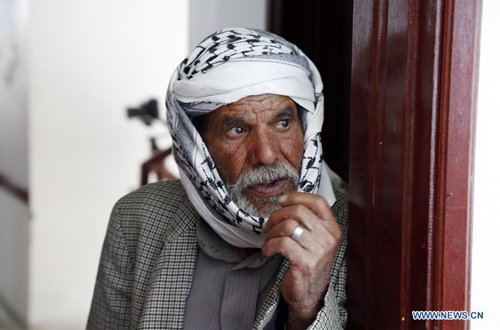 A man with eye illness waits to receive free treatment during a medical campaign in Sanaa, Yemen, Sept. 16, 2019. A five-day medical campaign was launched on Sunday to provide free examination and surgery for people with eye illnesses. (Photo: Mohammed Mohammed/Xinhua)