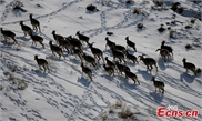Blue sheep eat fruits near a mountain road in Lhozhag County, Shannan City, southwest China's Tibet Autonomous Region, Sept. 22, 2019. The population of blue sheep, under the second-level state protection in China, grows thanks to the continuous protection efforts in recent years.(Photo: Xinhua)