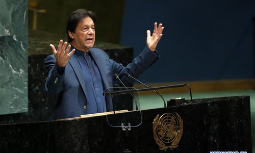 Pakistani Prime Minister Imran Khan addresses the General Debate of the 74th session of the UN General Assembly at the UN headquarters in New York, on Sept. 27, 2019. (Xinhua/Li Muzi)