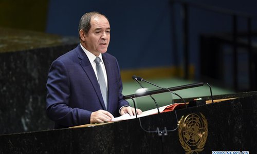 Algerian Foreign Minister Sabri Boukadoum addresses the General Debate of the 74th session of the UN General Assembly at the UN headquarters in New York, on Sept. 27, 2019. (Xinhua/Han Fang)