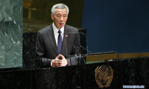 Singaporean Prime Minister Lee Hsien Loong addresses the General Debate of the 74th session of the UN General Assembly at the UN headquarters in New York, on Sept. 27, 2019. (Xinhua/Li Muzi)