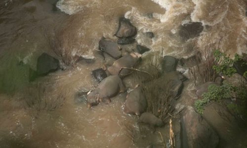 Thanya said that park rangers on Saturday morning heard elephants crying in the creek leading to the waterfall.