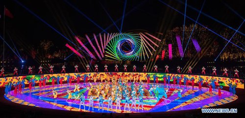 Artists perform during the closing ceremony of the 2019 Beijing International Horticultural Exhibition in Beijing, capital of China, Oct. 9, 2019. (Xinhua/Zhai Jianlan)