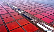 Aerial photo taken on Oct. 13, 2019 shows harvested chili peppers in Bohu County, northwest China's Xinjiang Uygur Autonomous Region. (Xinhua)
