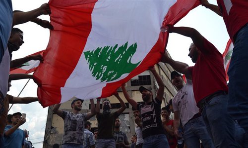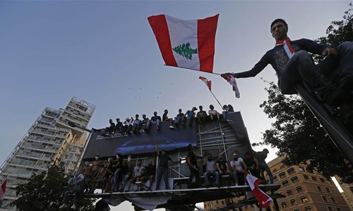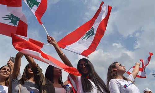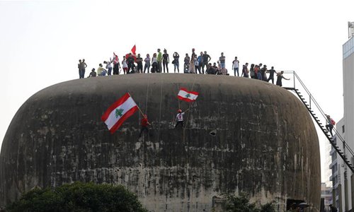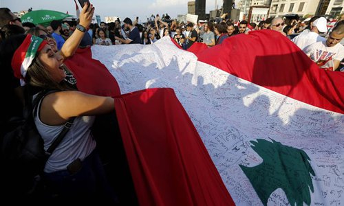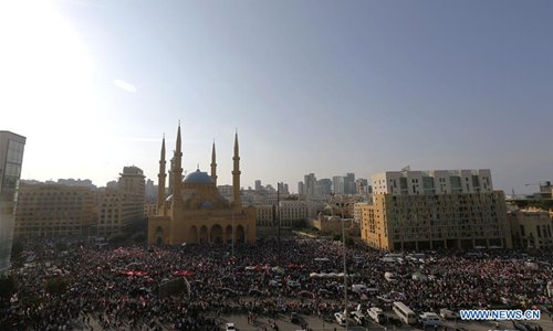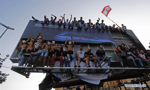 People take part in a protest in the downtown of Beirut, Lebanon, on Oct. 20, 2019. Nationwide demonstrations continued for the fourth day in Lebanon amid demands by protesters to change the government, the National News Agency reported on Sunday. (Photo by Bilal Jawich/Xinhua)