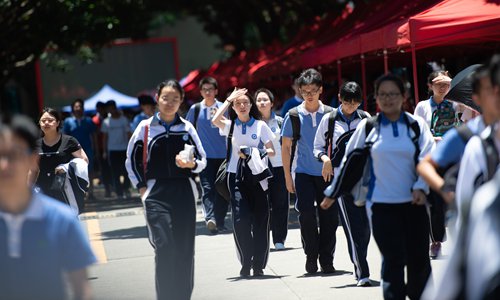 Students walk out from a venue hosting the college entrance examination in Shenzhen of South China's Guangdong Province on June 7, 2019. Photo: IC