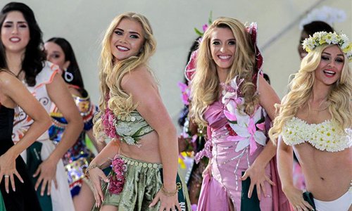 Contestants pose for photos during the Miss Earth 2019 coronation night in Paranaque City, the Philippines, Oct. 26, 2019. 85 candidates from around the world competed in the contest. Nellys Pimentel of Puerto Rico won the Miss Earth 2019 title. (Photo: Xinhua)