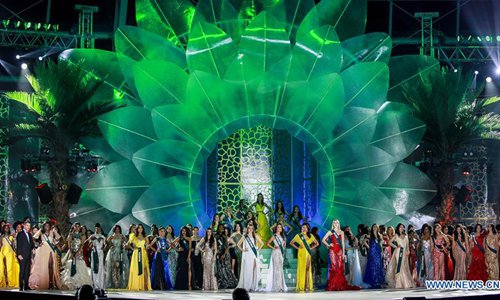 Contestants attend the Miss Earth 2019 coronation night in Paranaque City, the Philippines, Oct. 26, 2019. 85 candidates from around the world competed in the contest. Nellys Pimentel of Puerto Rico won the Miss Earth 2019 title. (Photo: Xinhua)