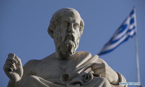 Photo taken on Nov. 7, 2019 shows a statue of Socrates in Athens, Greece. Photo:Xinhua