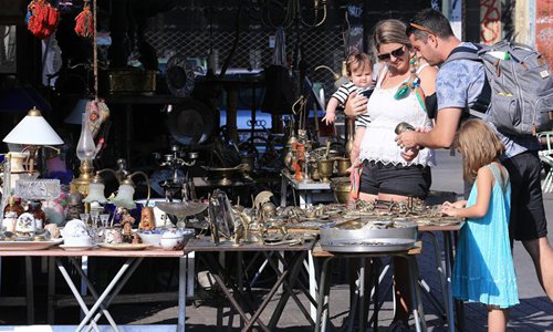 Photo taken on Oct. 22, 2019 shows people visiting Monastiraki flea market in Athens, Greece. Photo:Xinhua