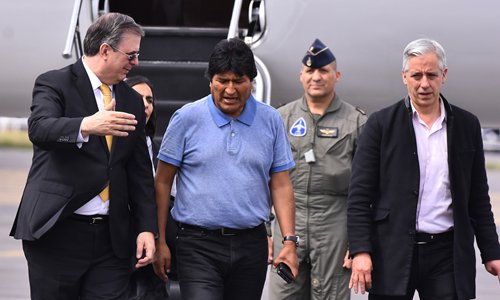 Ex Bolivia's President Evo Morales arrives at the International Airport of Mexico, after having accepted political asylum due to his resignation as president of the Bolivian country because of a coup d'etat on November 12, 2019 in Mexico City, Mexico (Photo:VCG)