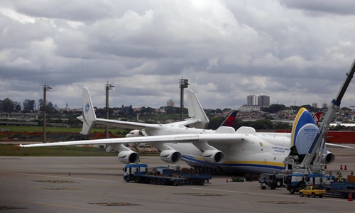 File photo shows the world' s largest cargo plane Antonov An-225 Mriya stands on the tarmac of Guarulhos International Airport, in the outskirts of Sao Paulo, Brazil. (Xinhua/Rahel Patrasso)