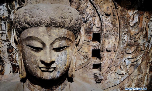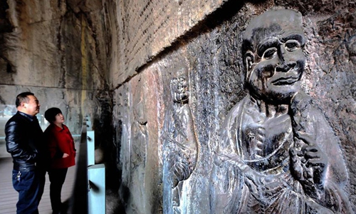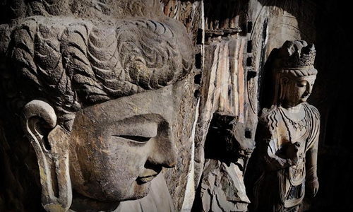 Photo taken on Feb. 8, 2019 shows the statues at Longmen Grottoes scenic area in Luoyang, central China's Henan Province. Photo:Xinhua