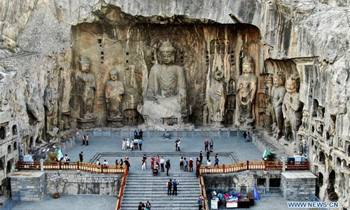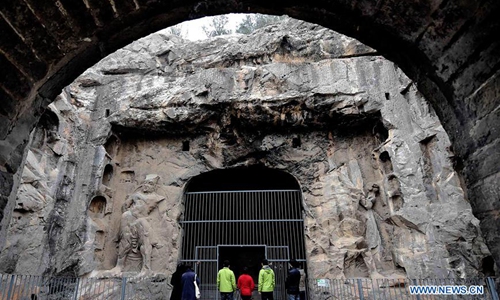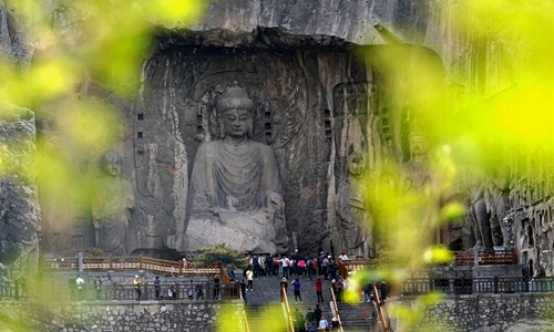 Tourists visit the Longmen Grottoes scenic area in Luoyang, central China's Henan Province, March 26, 2019. Photo:Xinhua