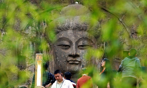 Tourists visit the Longmen Grottoes scenic area in Luoyang, central China's Henan Province, March 7, 2016. Photo:Xinhua