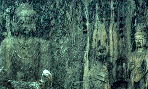 Aerial photo taken on April 18, 2017 shows a statue at Longmen Grottoes scenic area in Luoyang, central China's Henan Province. Photo:Xinhua