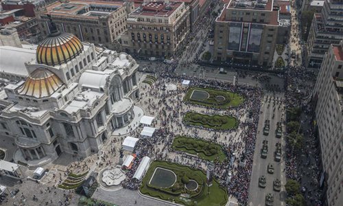 Photo taken on Sept. 16, 2018 shows a military parade to commemorate Mexico's Independence Day in Mexico City, capital of Mexico, on Sept. 16, 2018. (Xinhua/Cesar Vicuna)