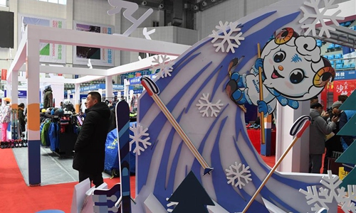 People visit a fair held in a gymnasium in Altay, northwest China's Xinjiang Uygur Autonomous Region, Nov. 27, 2019. The 14th Xinjiang Winter Tourism Trade Fair opened here on Wednesday. (Xinhua/Sadat)