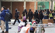 Hong Kong police and firefighters have entered the Hong Kong Polytechnic University on November 28 to search for dangerous chemicals. Photo: Yin Hao/GT