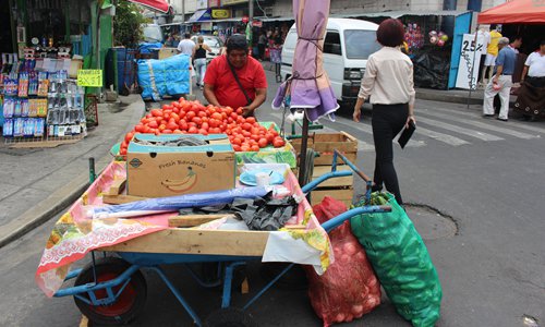 A vendor sells fruits on a street in San Salvador, El Salvador. Photo: Xing Xiaojing/GT