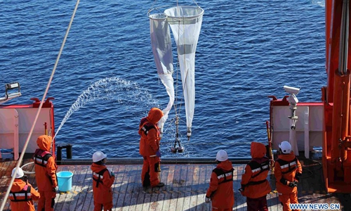 Team members of China's 36th Antarctic expedition work on China's polar icebreaker Xuelong 2 in the Antarctica's Prydz Bay, Dec. 6, 2019. Team members of China's 36th Antarctic expedition conducted multidisciplinary observations and researches in Antarctica's Prydz Bay from Dec. 3, to Dec. 7. (Xinhua/Liu Shiping)