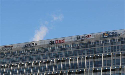 Logos of foreign banks on an office building in Beijing’s Financial Street Photo: IC