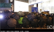 A rioter attempts to throw a petrol bomb into a building in Admiralty, south China's Hong Kong, Oct. 1, 2019. (Xinhua)
